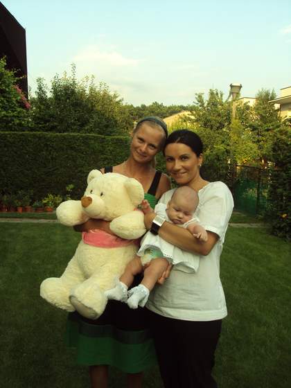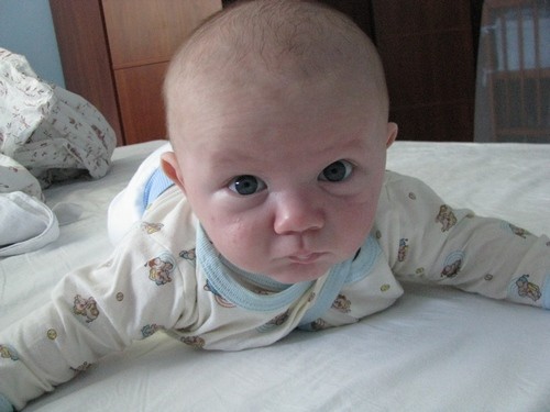 Dziewczyny miały rację - Marcelek wydaje się na tych zdjęciach bardzo dużym chłopcem. A w ogóle jest bardzo ładniusi (i taki dorosły jak na niemowlaka). No a Ty, kochana, tylko zazdrościć, figurka super. Też bym chciała pozbyć się kilku kg (no ale nie za taką cenę jaką Ty musisz płacić). No ale coś za coś (z cukrzycy ciążowej zadowolona nie byłam, ale z jej skutków w ciąży - bardzo