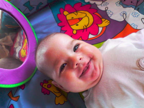 Moja za 2 dni bedzie miec 5miesiecy....:OOOO rany kiedy to minelo!!!!Confi jaki on jest slodki!!! i ten jezyczek bedzie dobrym calusnikiem