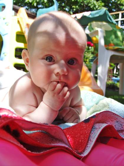 ola- racja to zdjecie z piesuniem jest swietne , fajnie sobie lezy na brzusku - u nas wlasciwie po kilku sekundach jest ryk bo nie lubi . Widac ze Malgoska slina jest i lubi polezec.