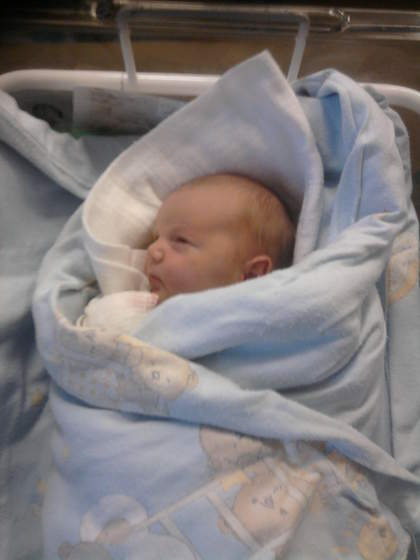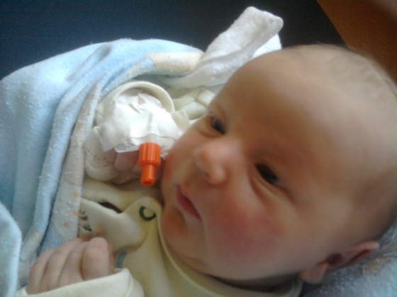 Jasiek wstał, zaczęłam przebierać mu pampka, już smarowałam mu wylocik a tu chluuuup wprost na maminą rączkęPierwsza kupka na rękę zaliczona