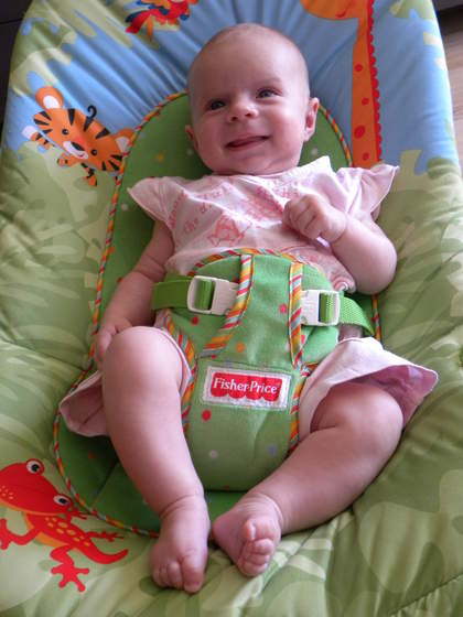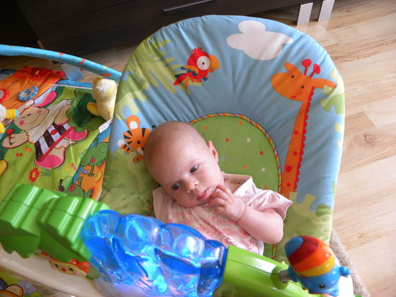ona sliczną masz córeczkę, a na tym pierwszym zdjęciu na leżaczku wygląda na dużo starszą