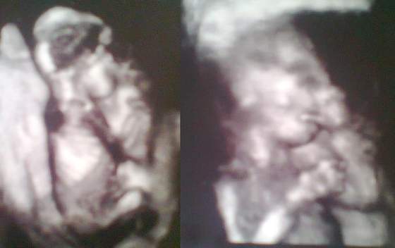 Byłam dziś na wizycie. Dr chciał zrobić już połówkowe USG, ale niestety nie wszystkie narządy były widoczne, np żołądka nie widzieliśmy i w 23 tyg na następnej wizycie będzie powtórka z rozrywki. Na poprzednim USG pamiętam że żołądeczek był wyraźnie widoczny więc dr podejrzewa, że dzidzia właśnie się wypróżniła i jest pusty dlatego go nie widać. A reszta pomiarów wychodzi na tydzień wcześniej niż z OM wynika. Ale tym też kazał się nie przejmować więc cierpliwie czekam do następnego USG w 23 tyg a potem będę miała wizyty już co 3 tygodnie. Dzisiaj dzieciok nam nóżki skrzyżował i nie pokazał co tam ma więc trzymam się wersji, że dziewczynka skoro takie wstydliwe :D Dołączam zdjątka w 4d, miałam robione w cenie wizyty i niesamowicie wszystko widać :)